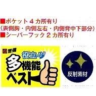 ポケット4カ所で収納性に優れ、シーバーフックも2カ所有!さらに着丈、腰帯部分は4段階調節可能な多機能安全ベストです。
