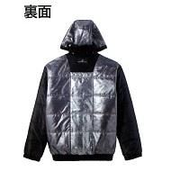 裏アルミプリントを使用し、輻射熱を利用した魔法瓶効果の軽量ながら暖かい防寒着です。